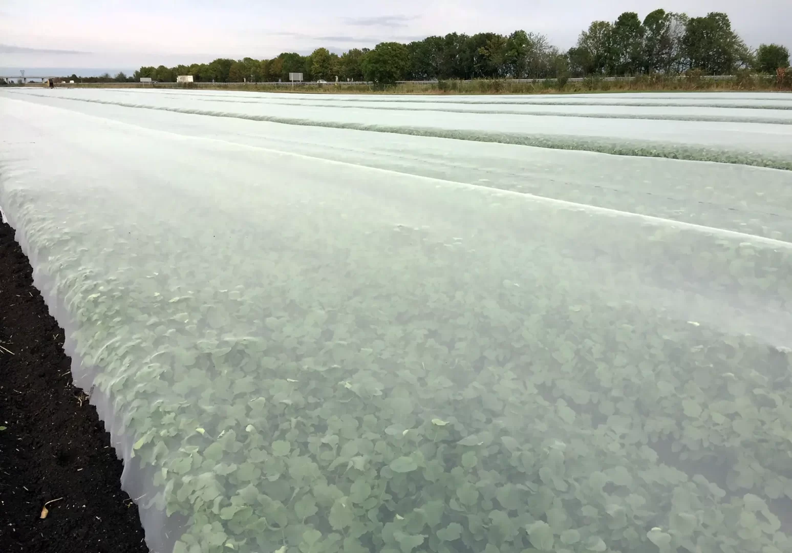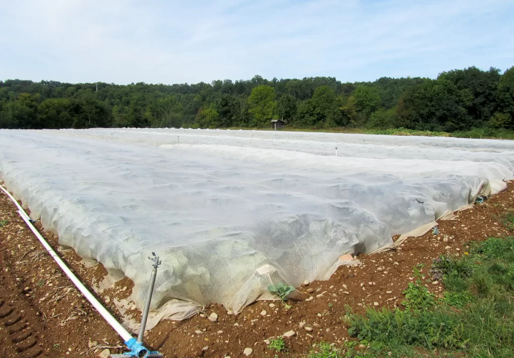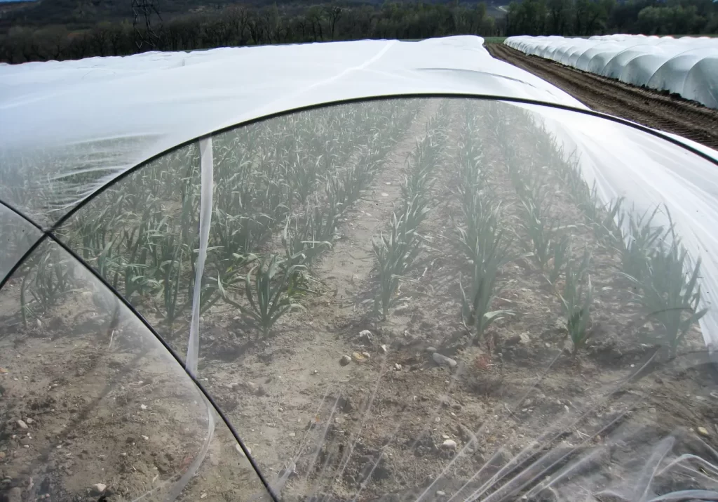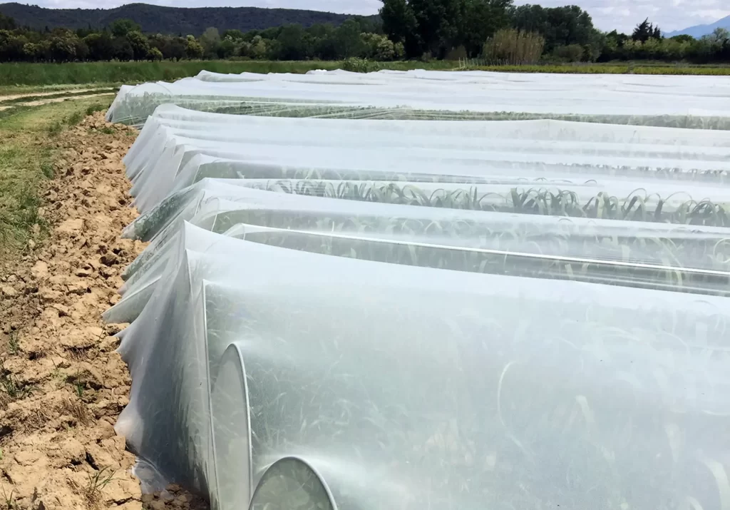 - Parcelles plein champ : filets en pose directe, sur butte ou sur arceaux,