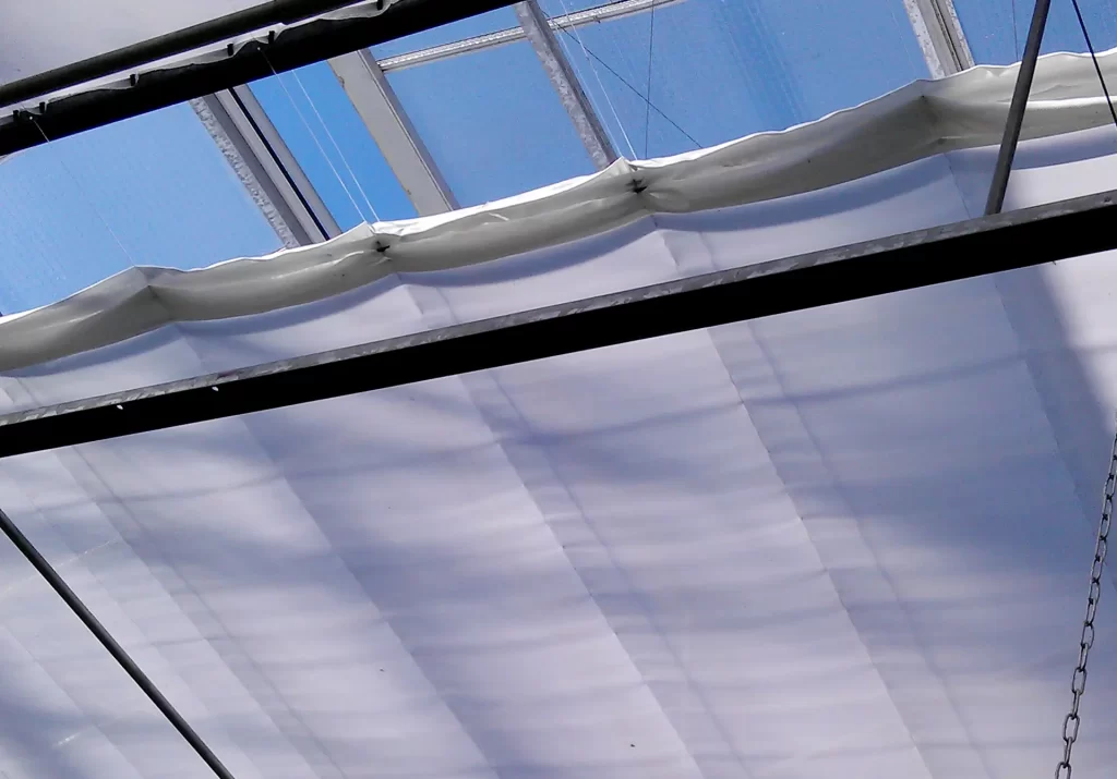 - Écran d’isolation thermique intérieur tricoté pour la régulation climatique en serre.