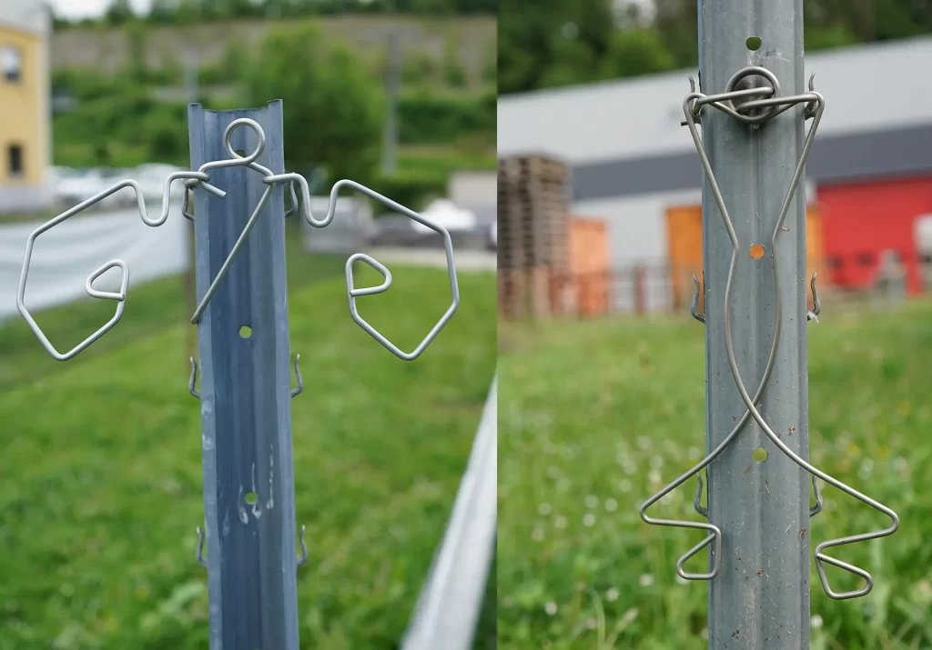 • Pièces pour l’accroche du filet adaptées aux piquets bois et métal développées par SCDC