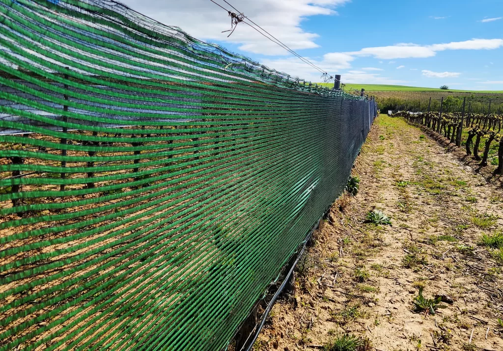 Le TIP 067 est un filet d’ombrage et pare-grêle spécialement conçu pour la vigne. Grâce à l’insertion de bandelettes vertes alternées, il assure un ombrage de 50 %, réduisant fortement l’impact des rayonnements solaires sur les grappes.